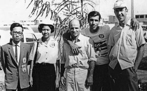 شرح عکس۱: از راست مسعود صالحیه(ملیپوش والیبال)، جواد مقامینژاد و ابراهیم سیفپور( کشتی) در بانکوک