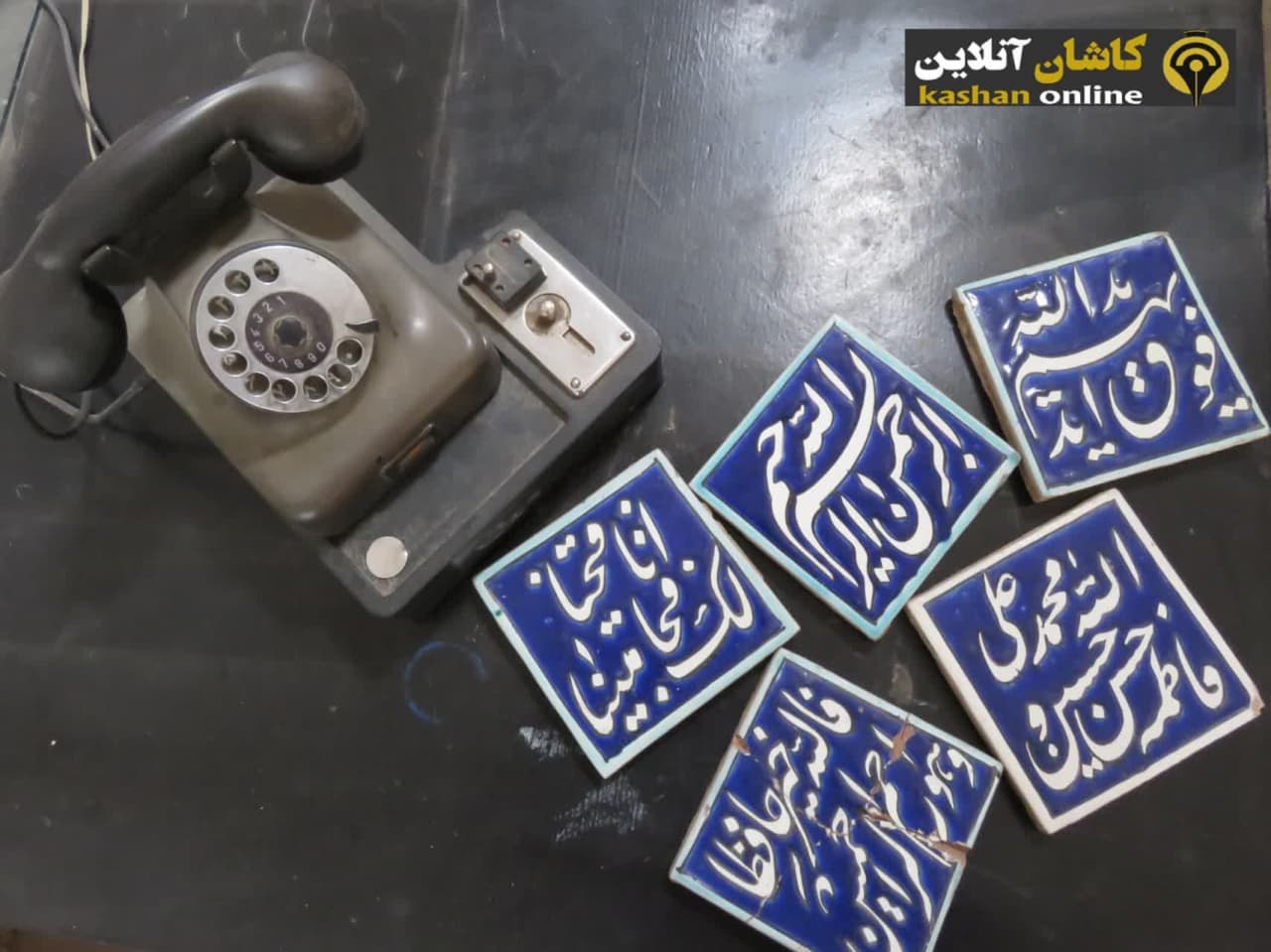 در بالاترین قسمت سردر گاراژ، توجهم به یک ردیف افقیِ خالی (احتمالا کاشی) جلب می شود. از عباس نصیری فرد میپرسم داستان این ردیف خالی چیست؟ او بلافاصله به داخل دفتر باز می گردد و ۵ قطعه کاشیِ زیبای سالم آبی رنگ با نشانه های دینی و اعتقادی را نشانم می دهد و می گوید اینهاست.«بسم الله الرحمن الرحیم، نام خدا و پنج تن آل عبا، یدالله فوق ایدیهم، انا فتحنا لک فتحا مبینا و فا الله خیر حافظا و هو ارحم الراحمین» عناوین و اذکار روی این پنج کاشی است که روزگاری کنار هم بر سردر خودنمایی میکردند.