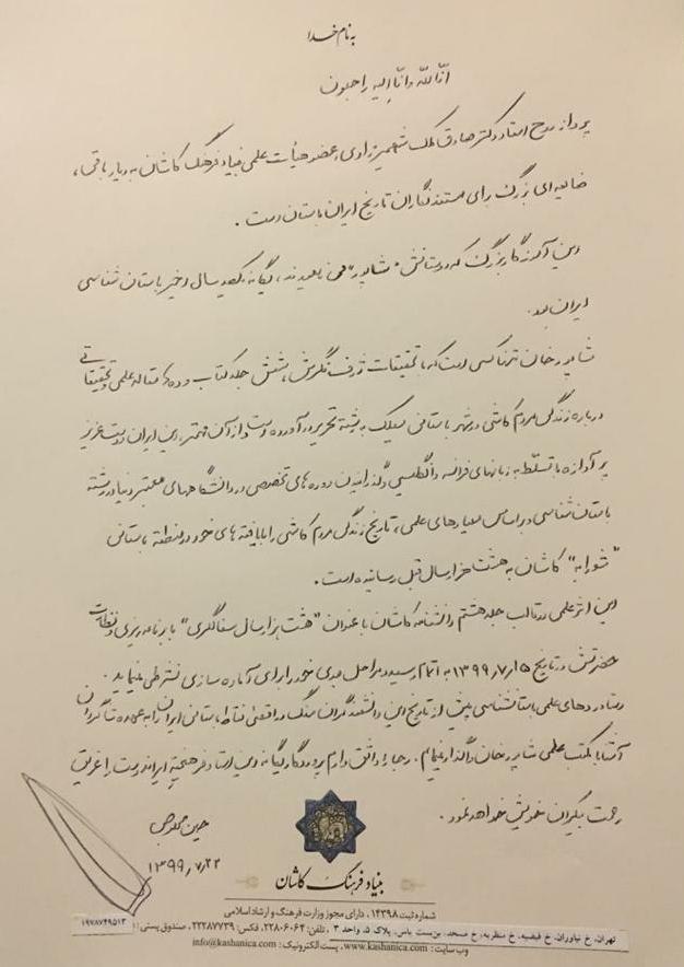 پرواز روح استاد دکتر صادق ملک شهمیرزادی عضو هیئات علمی بنیاد فرهنگ کاشان به دیار باقی ضایعه ای بزرگ برای مستندنگاران تاریخ ایران است.